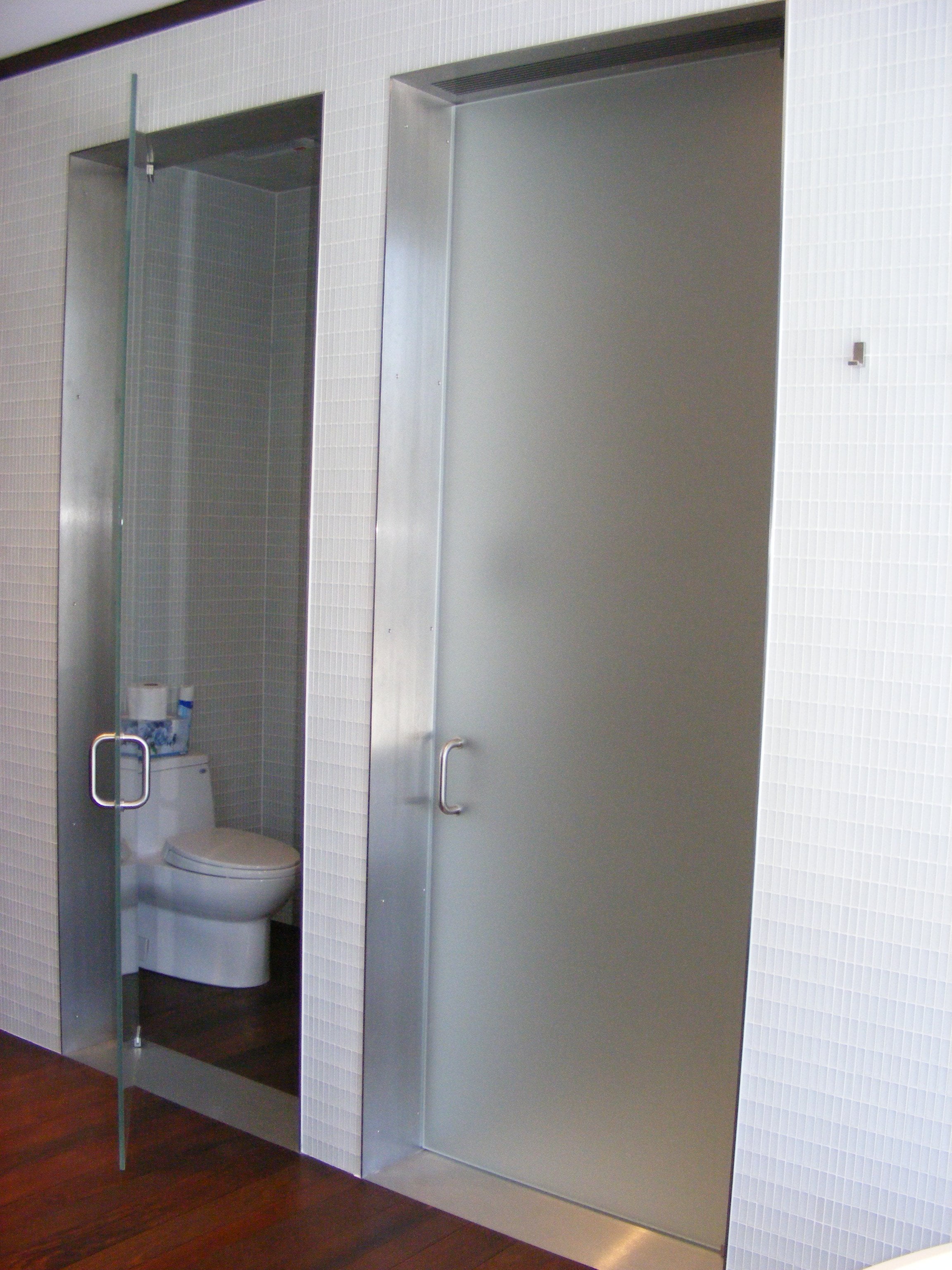 Chicago Bathroom Stall GlassGlassWorks began offering Glass Toilet Enclosures to unify our client’s bathrooms where the shower and toilet doors were in close proximity.